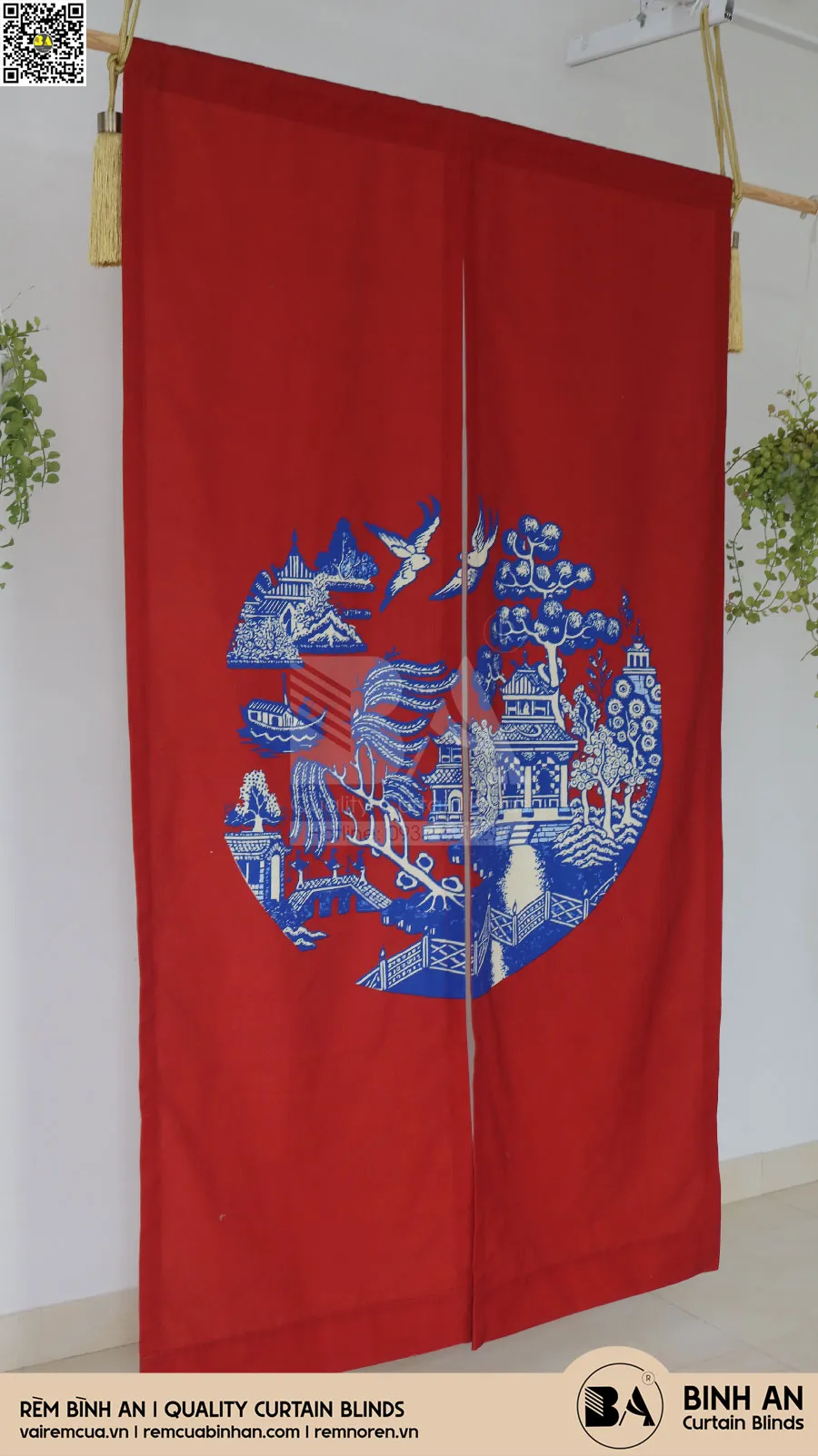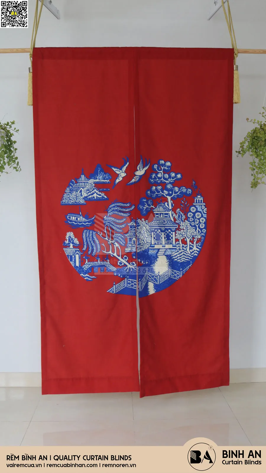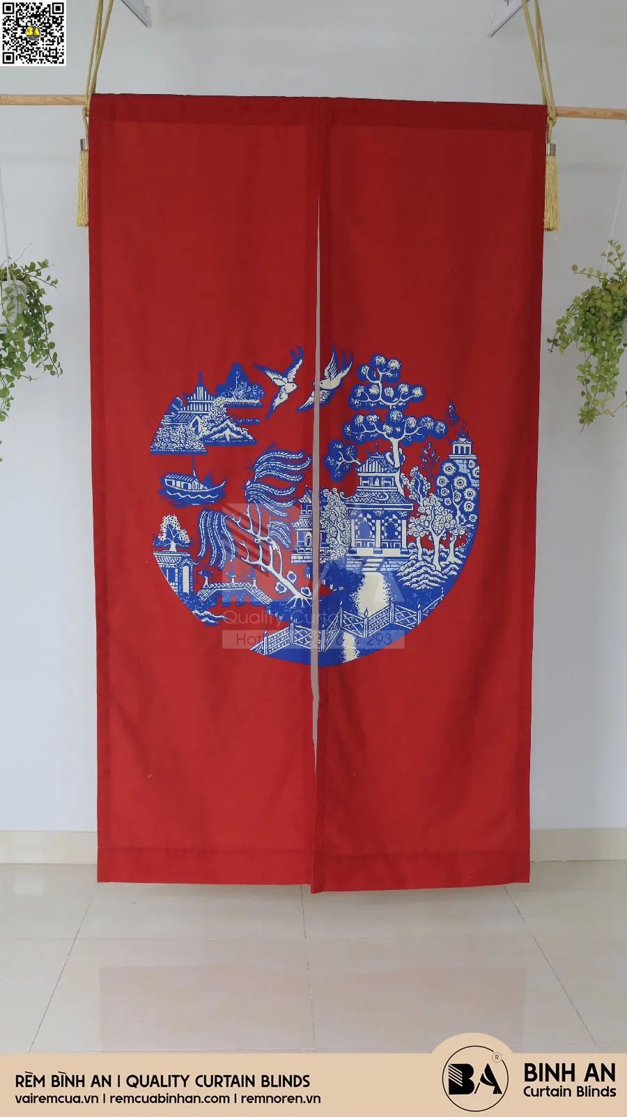 Rèm Noren Đỏ In Họa Tiết Đông Á