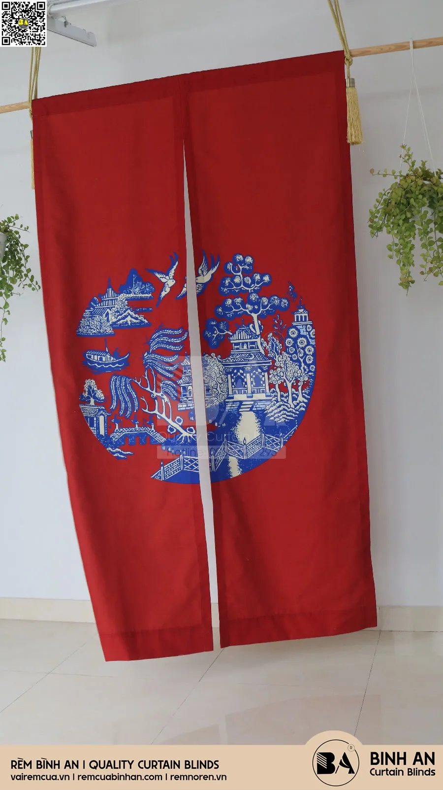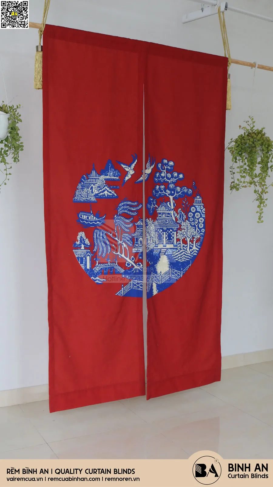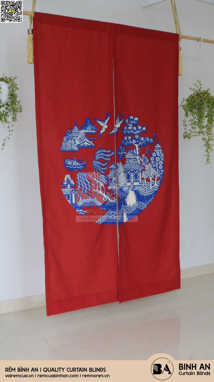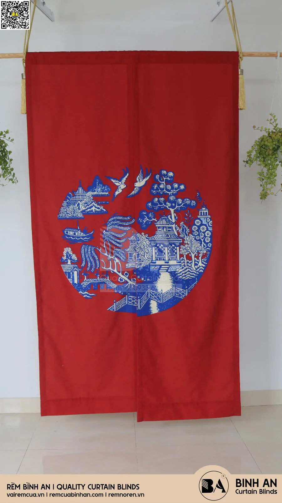 Rèm Noren Đỏ In Họa Tiết Đông Á