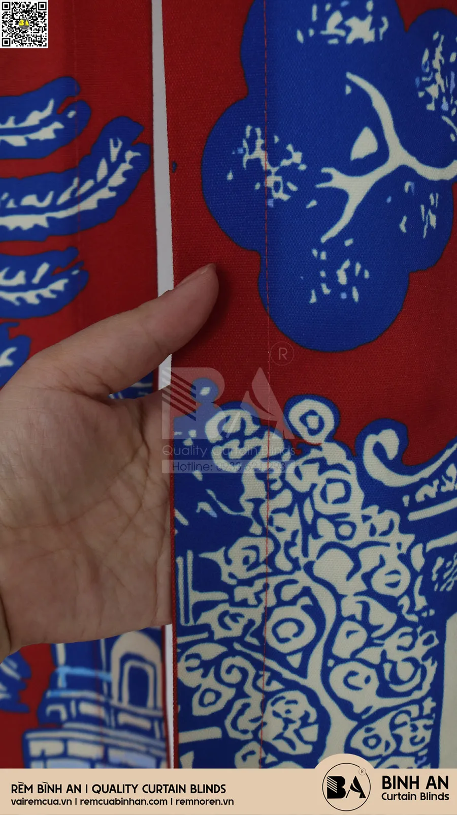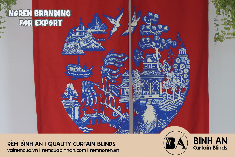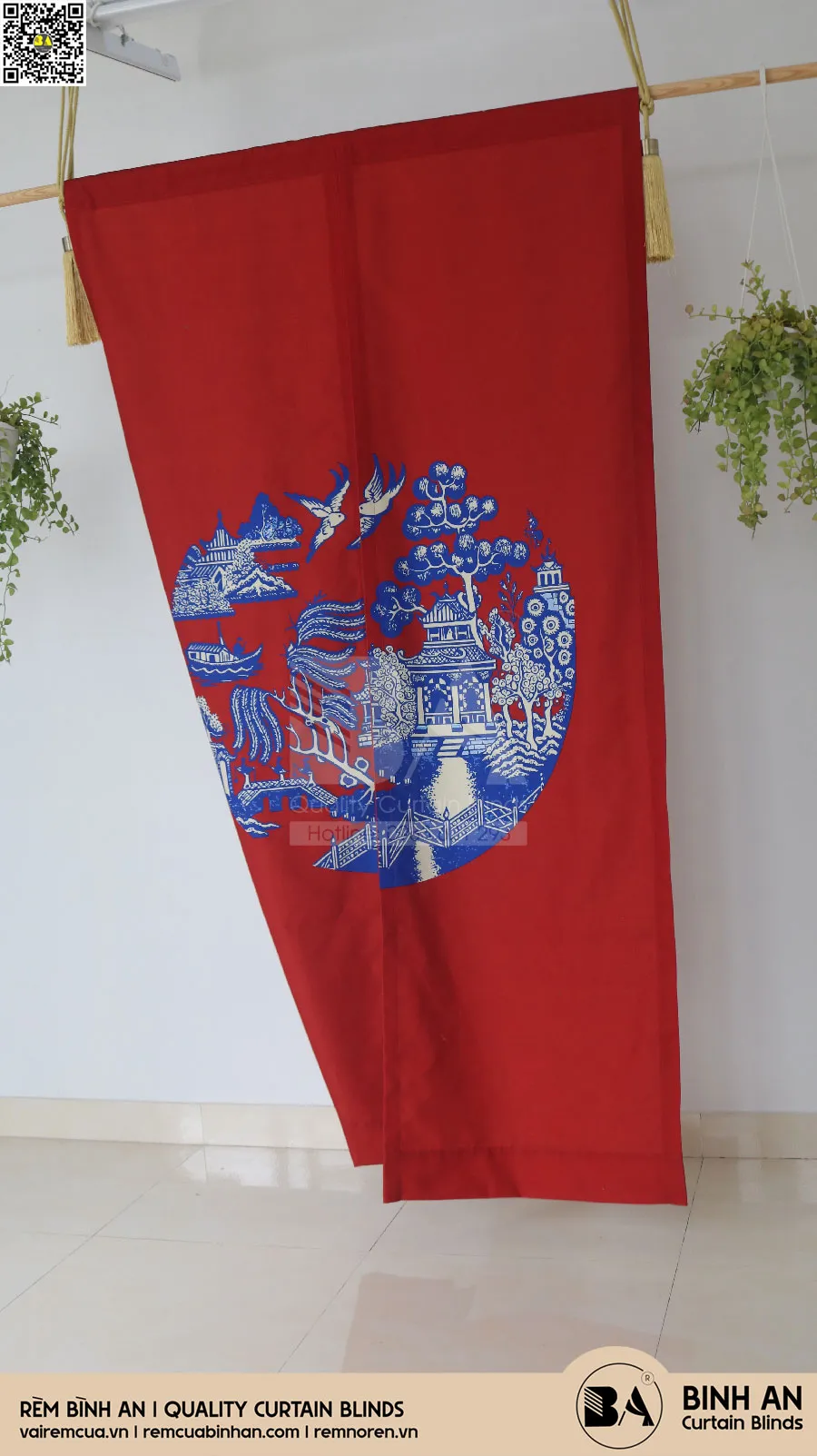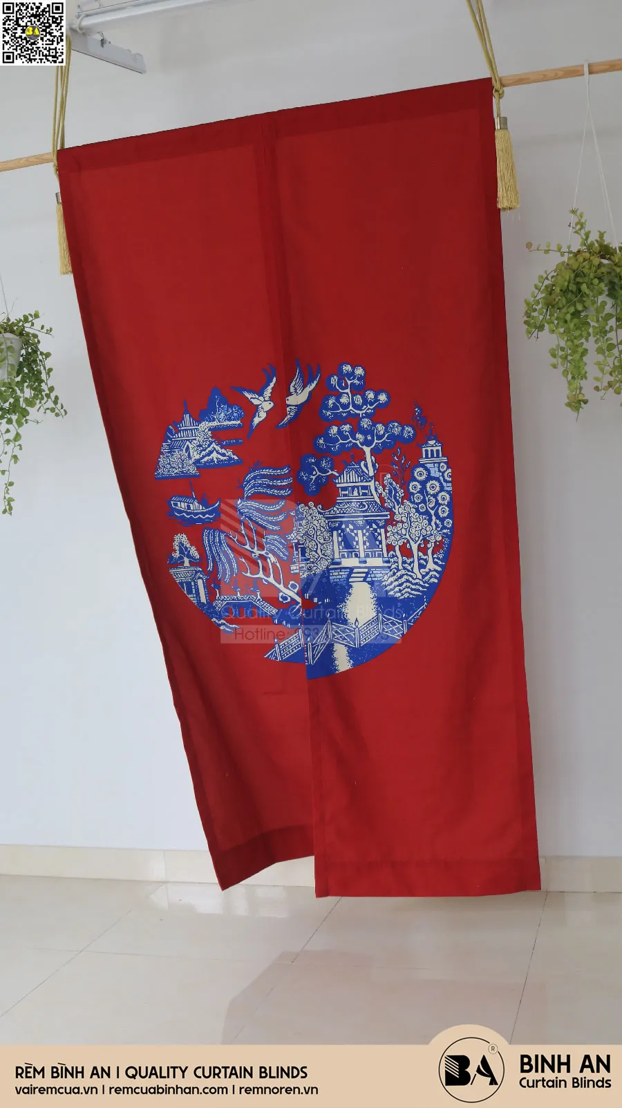 Rèm Noren Đỏ In Họa Tiết Đông Á