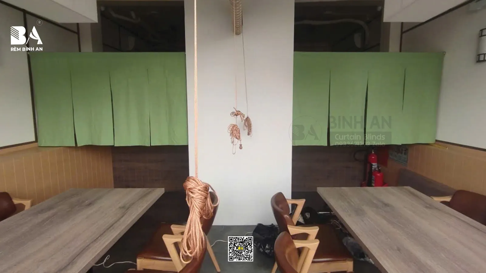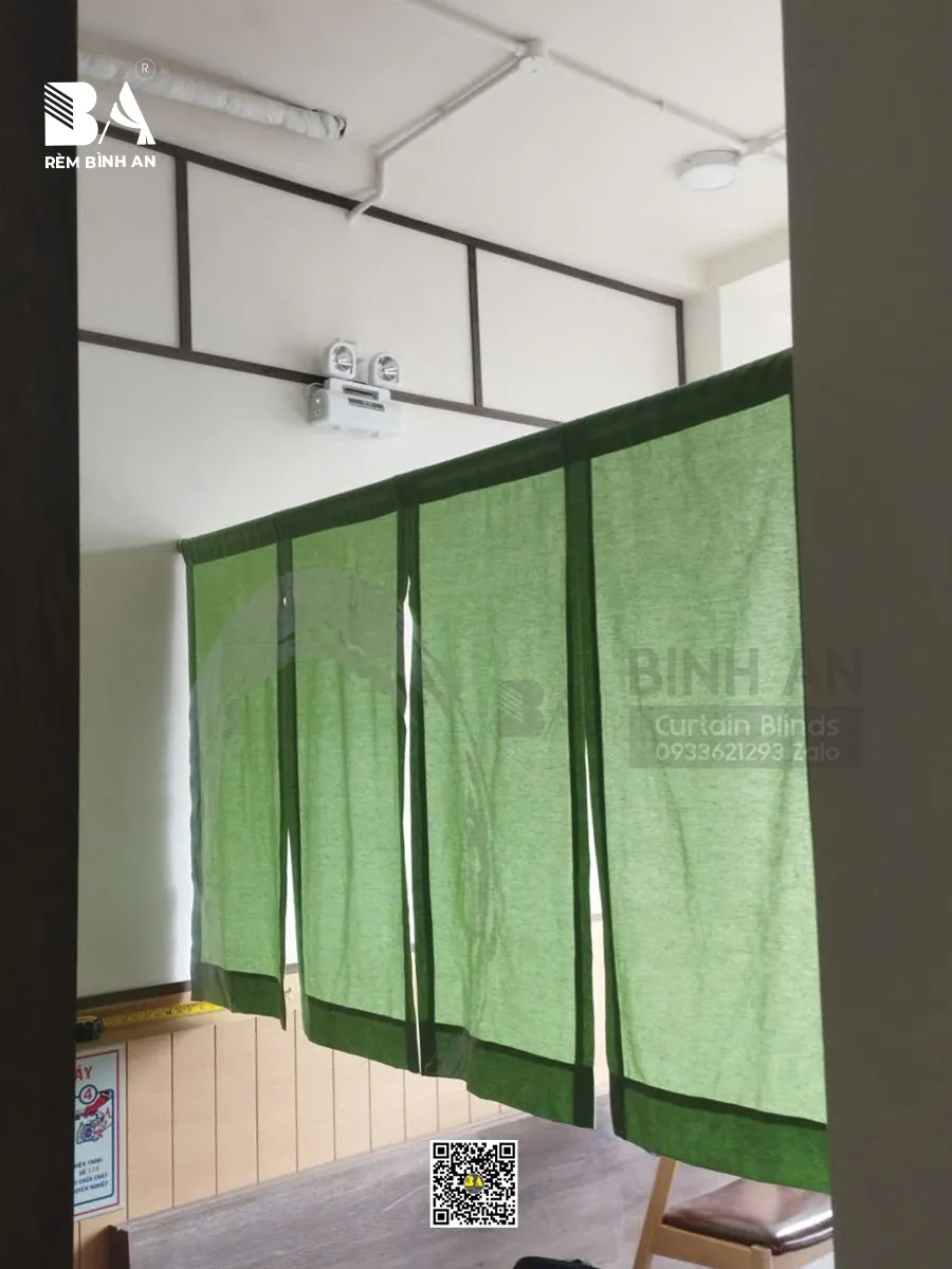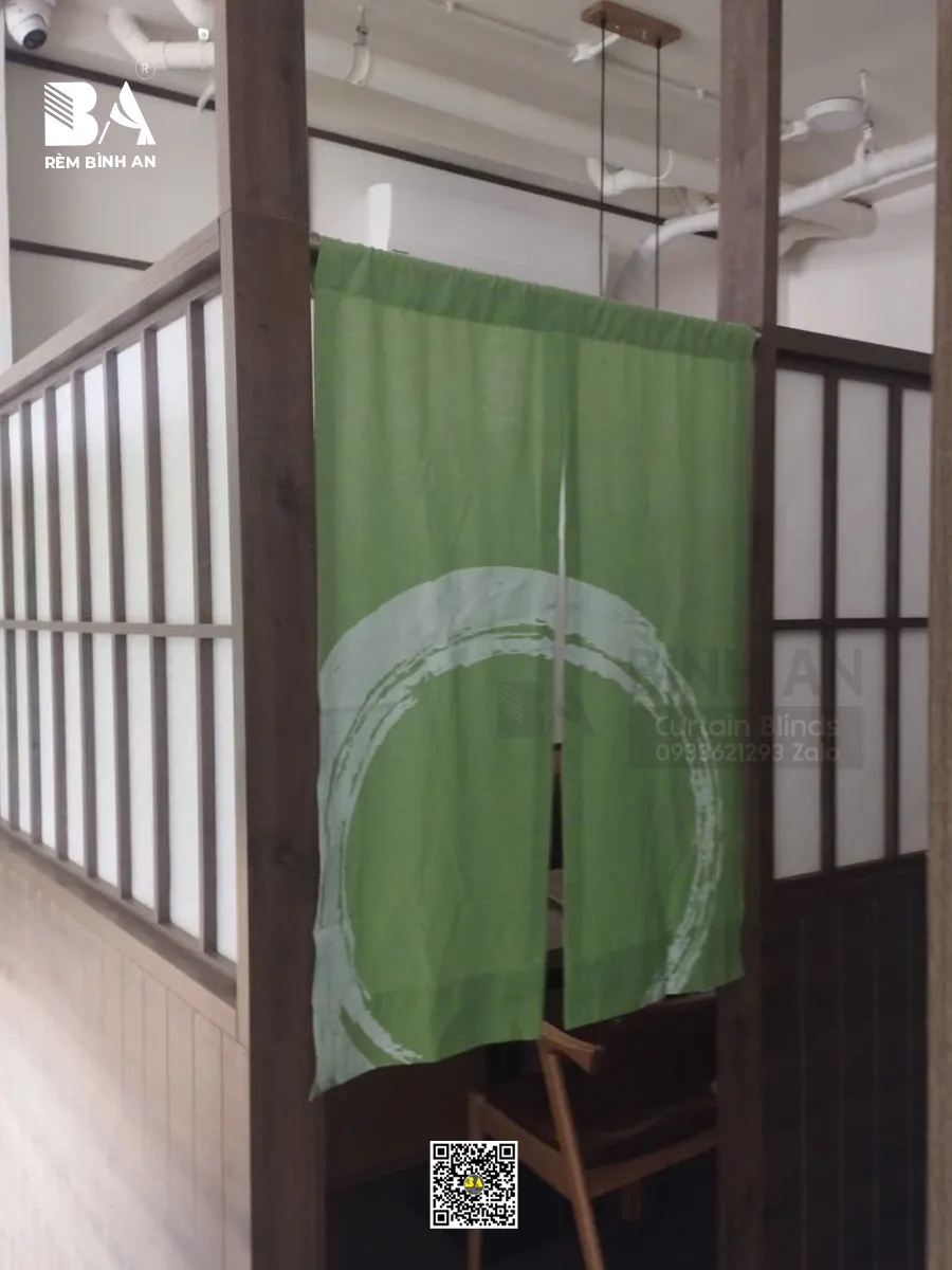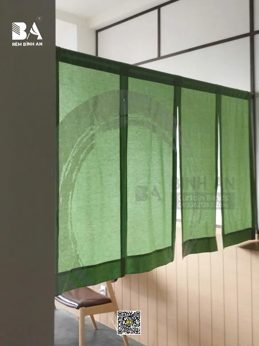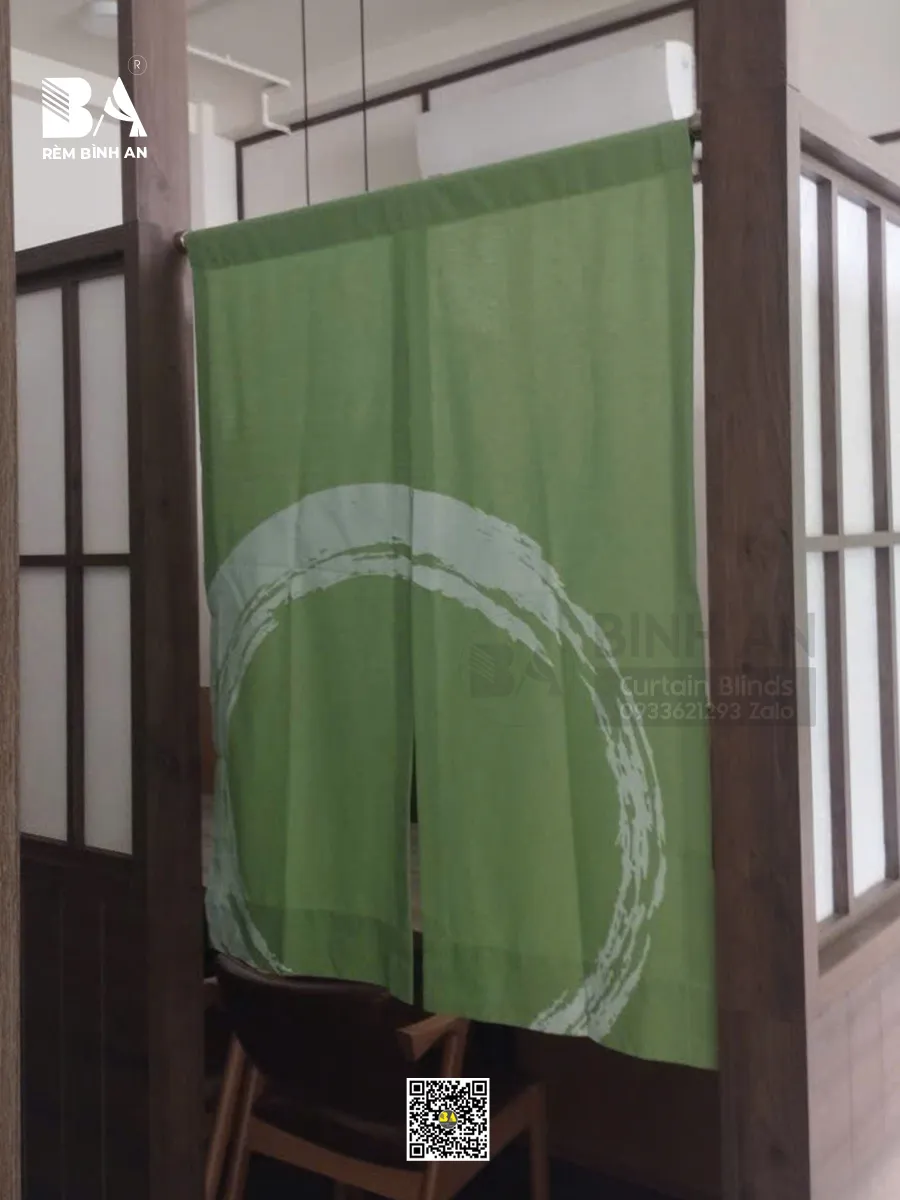 Rèm Noren Linen In Logo Màu Xanh Cốm