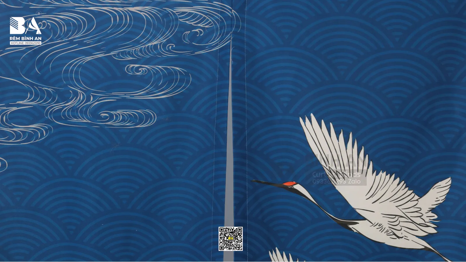 Rèm Noren Sóng Nhật Bản Xanh Cobalt