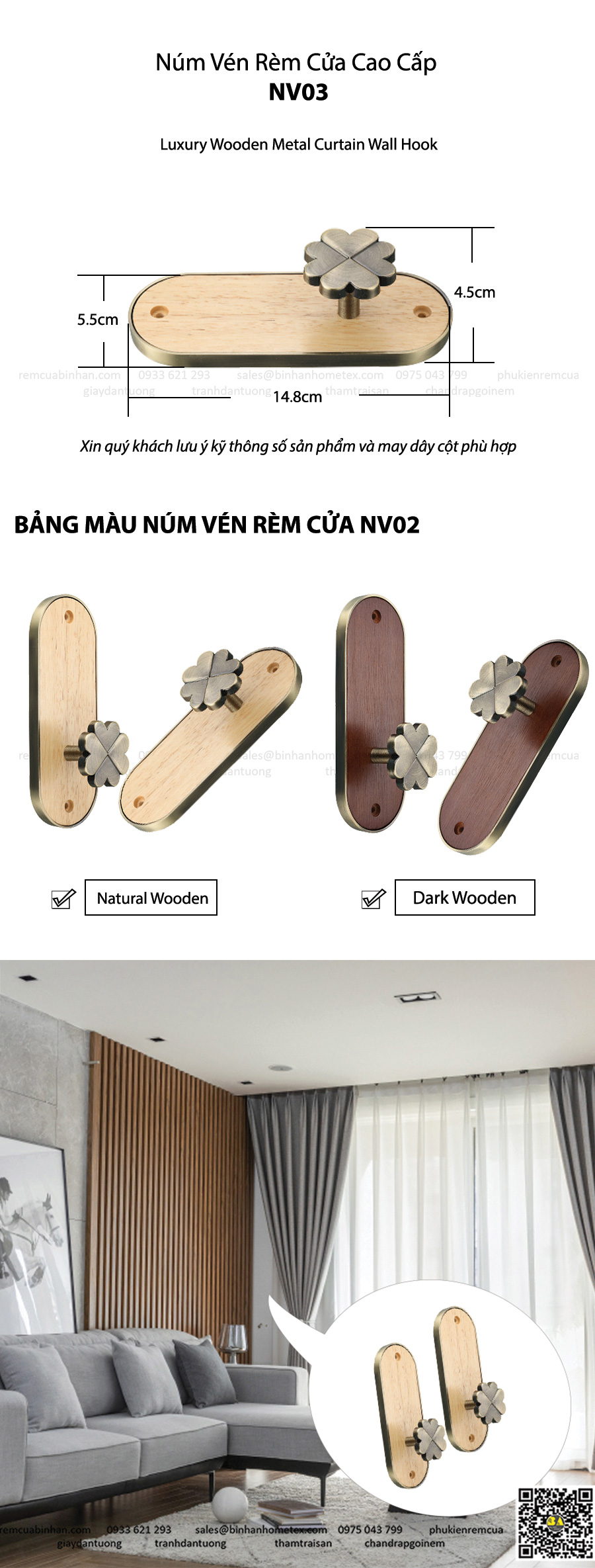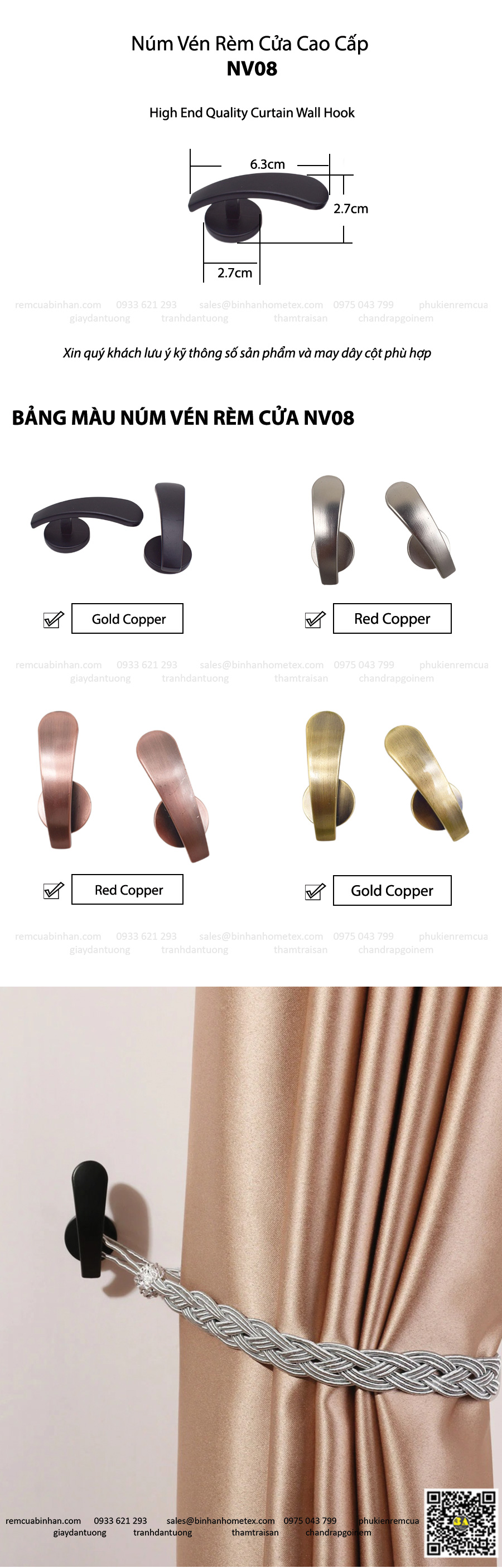 Núm Vén Rèm Cửa Móc Vén Màn Cửa Phụ Kiện Màn Rèm Cao Cấp Bình An
